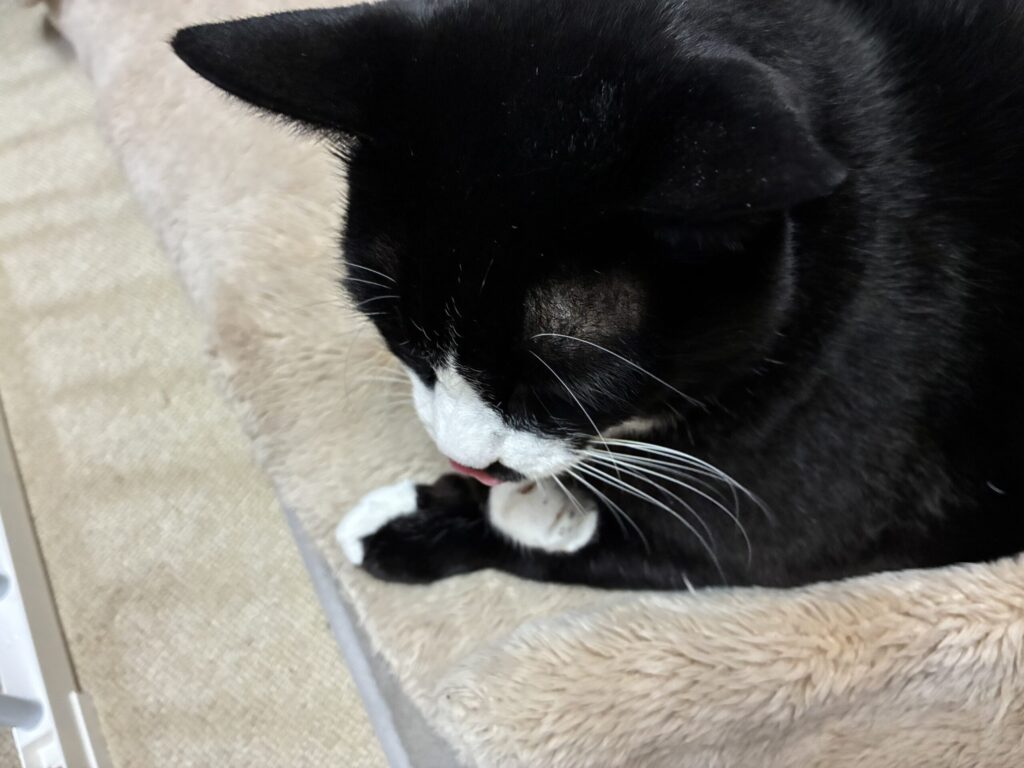 テンちゃんは毛繕いしたり寝ちゃったり、寝ながらご飯食べたり(笑)かなりリラックスできるようになりました。