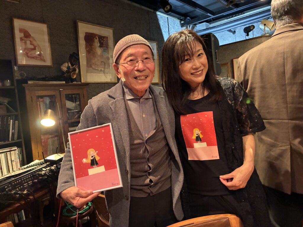 そんなわけで、ライブ当日サリちゃんとバンドのみなさんがこのイラストのTシャツを着ているのを見て小林さんもビックリ!