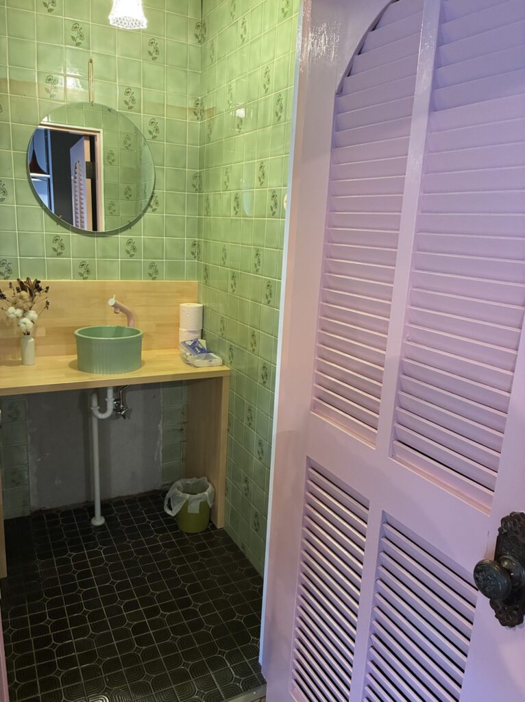 トイレもきれいで壁のかわいいタイルもそのままなんだそう。