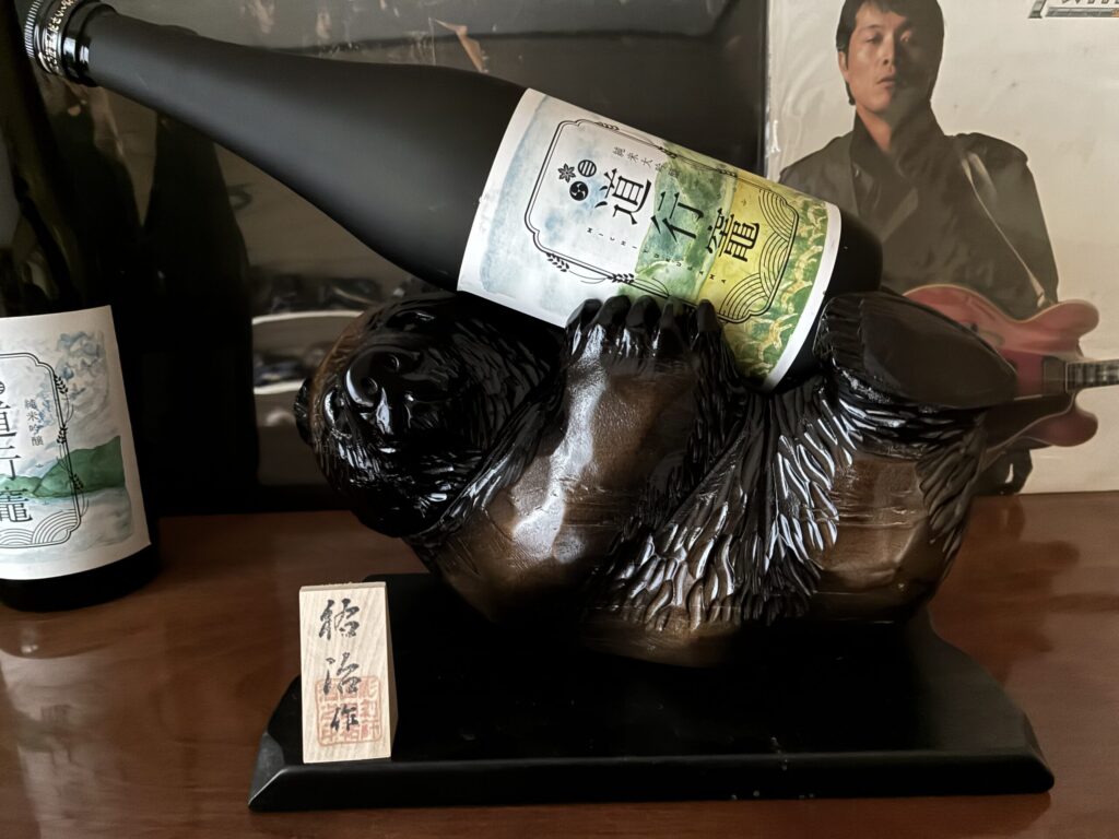 ラベルのデザインをさせていただいてます。ゴロンと寝転んだ熊さんが抱かえてるお酒がそうです。