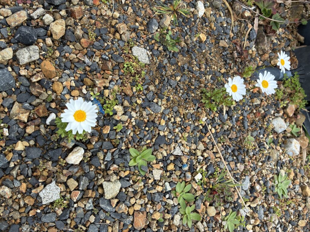 また、こぼれ種で生えるのでは定番のクリサンセマムもいくつかあって、どれもかわいい🩷